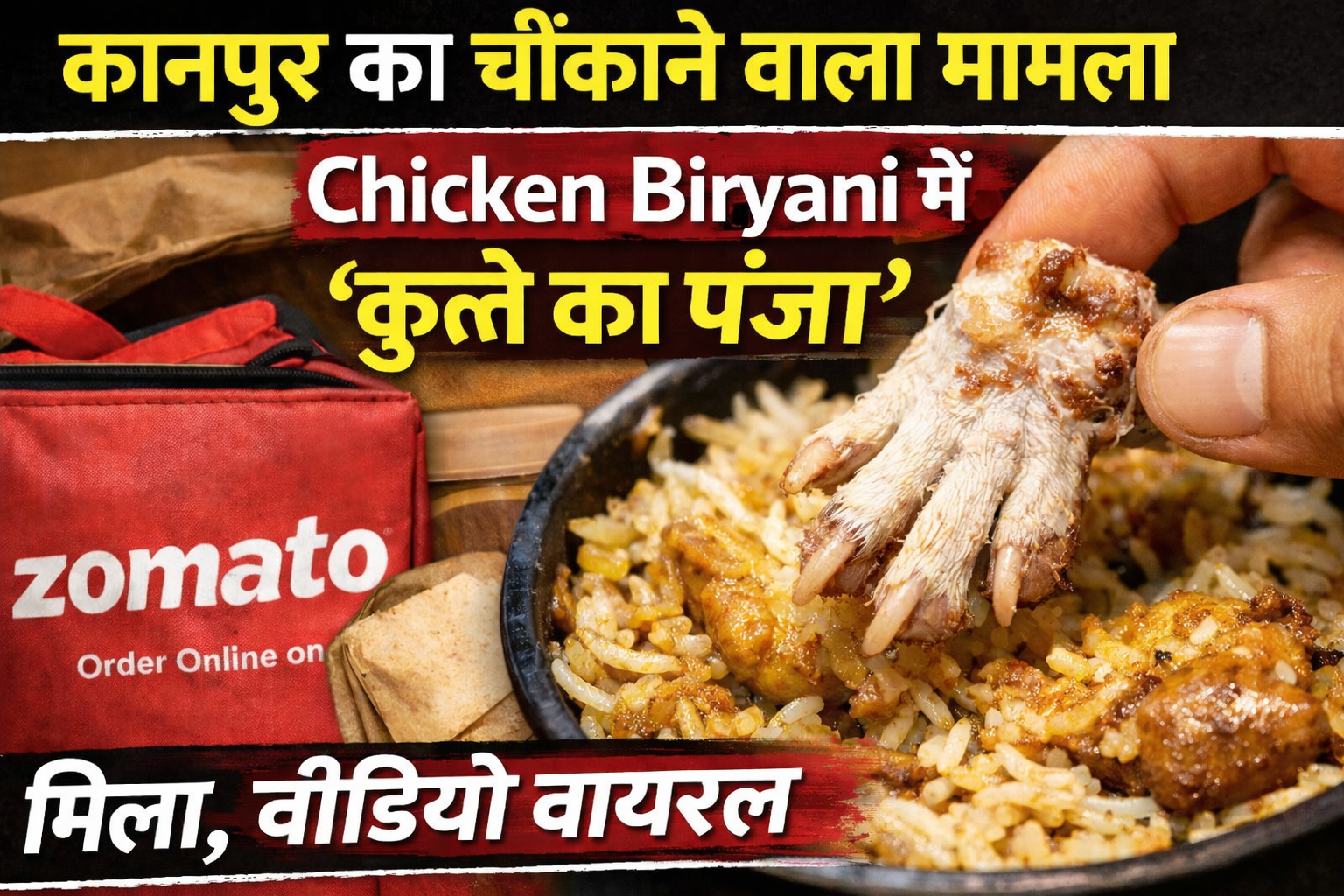 एक युवक ने दावा किया कि उसने ऑनलाइन फूड डिलीवरी प्लेटफॉर्म Zomato से Chicken Biryani ऑर्डर की थी, लेकिन जब उसने पैकेट खोला तो उसमें उसे ऐसा मांस का टुकड़ा दिखाई दिया जो कथित रूप से कुत्ते के पंजे जैसा लग रहा था।बताया जा रहा है कि युवक ने इस पूरी घटना का वीडियो बनाकर सोशल मीडिया पर साझा कर दिया, जिसके बाद यह वीडियो तेजी से वायरल हो गया और लोगों के बीच बहस छिड़ गई।वीडियो में क्या दिखावायरल वीडियो में युवक बिरयानी के डिब्बे में से एक अजीब आकार का मांस का टुकड़ा निकालकर कैमरे के सामने दिखाता नजर आता है।