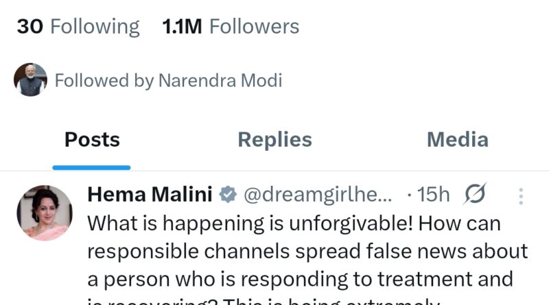 धर्मेंद्र की मरने की खबर से लोगों में मची सनसनी, हेमा मालिनी ने ट्विटर पर आकर गोदी मीडिया को सुनाई खड़ी खोटी