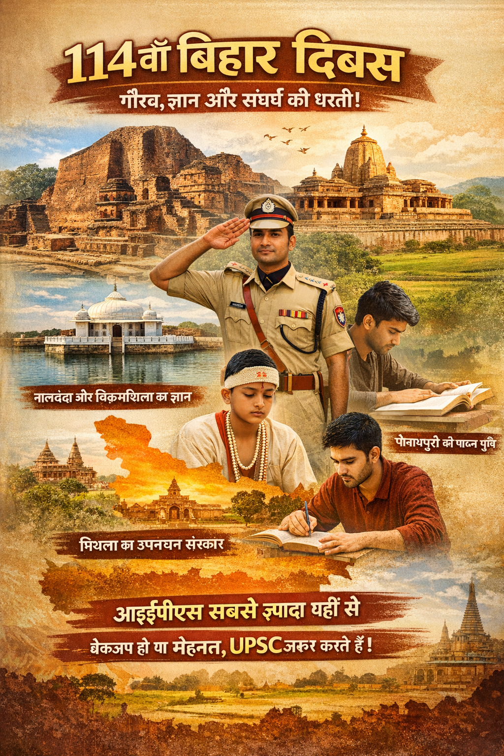 114वें बिहार दिवस पर यह कहना बिल्कुल सही होगा—बिहार सिर्फ एक राज्य नहीं, बल्कि एक एहसास है, एक गर्व है, और एक ऐसी पहचान है जो हर बिहारी के दिल को छू जाती है।“ जहाँ संघर्ष कहानी बनता है, और मेहनत पहचान—वही है हमारा बिहार।”