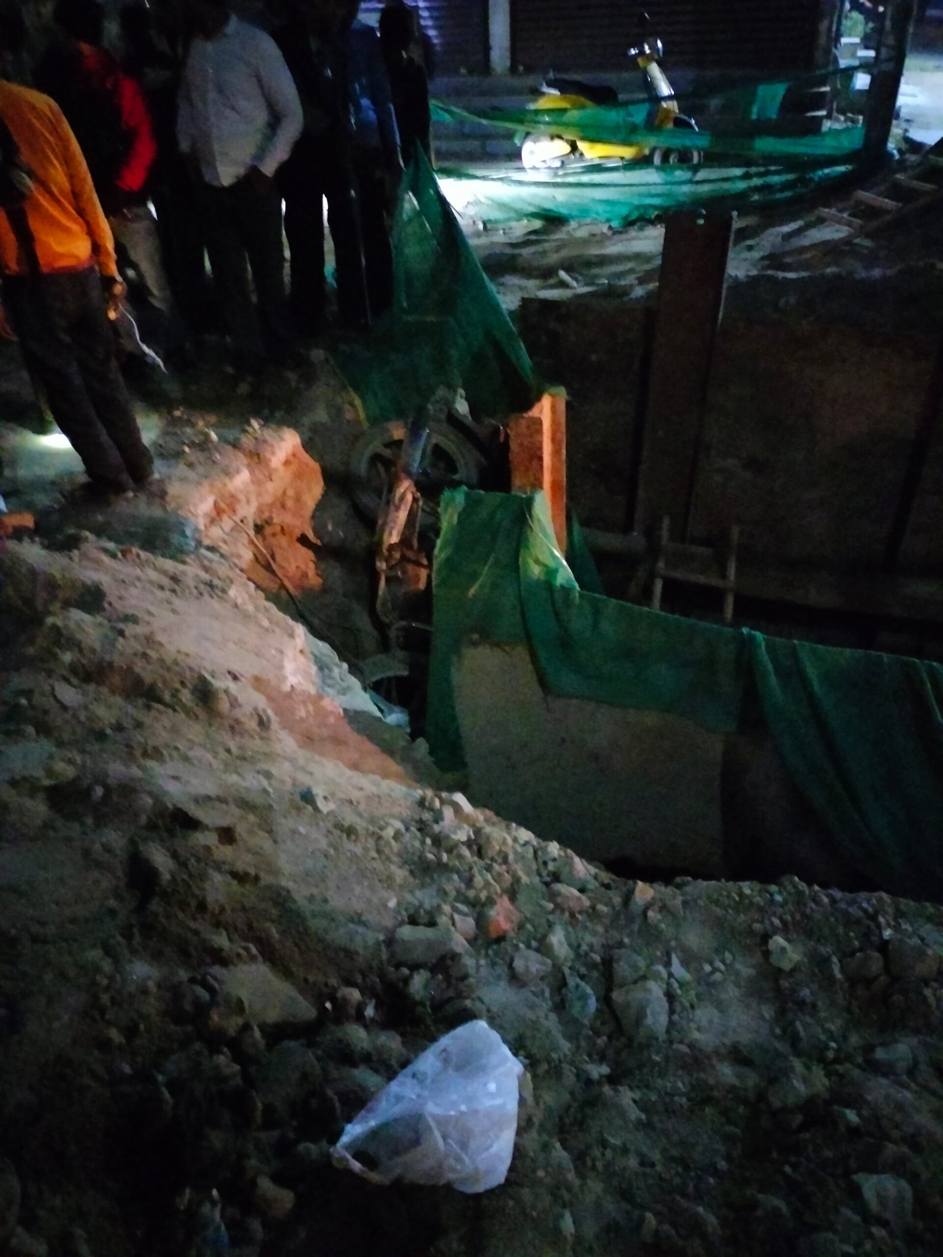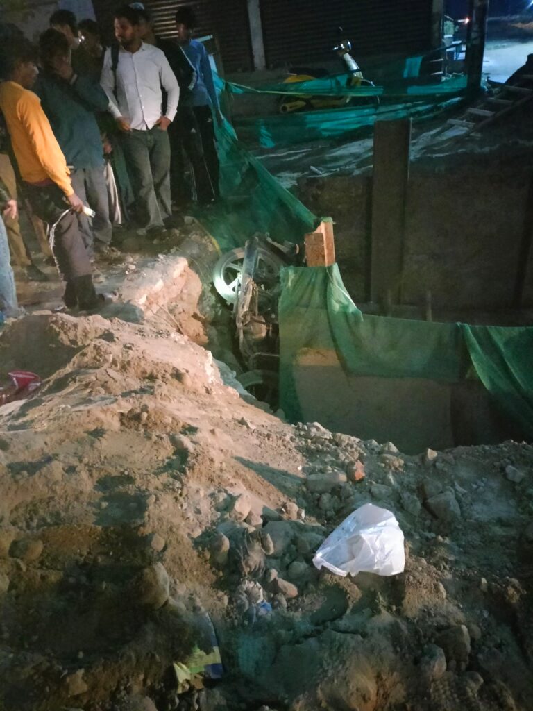 सीवर खुदाई के दौरान एस् एल ऍफ़ वेद विहार में पलटी बाइक